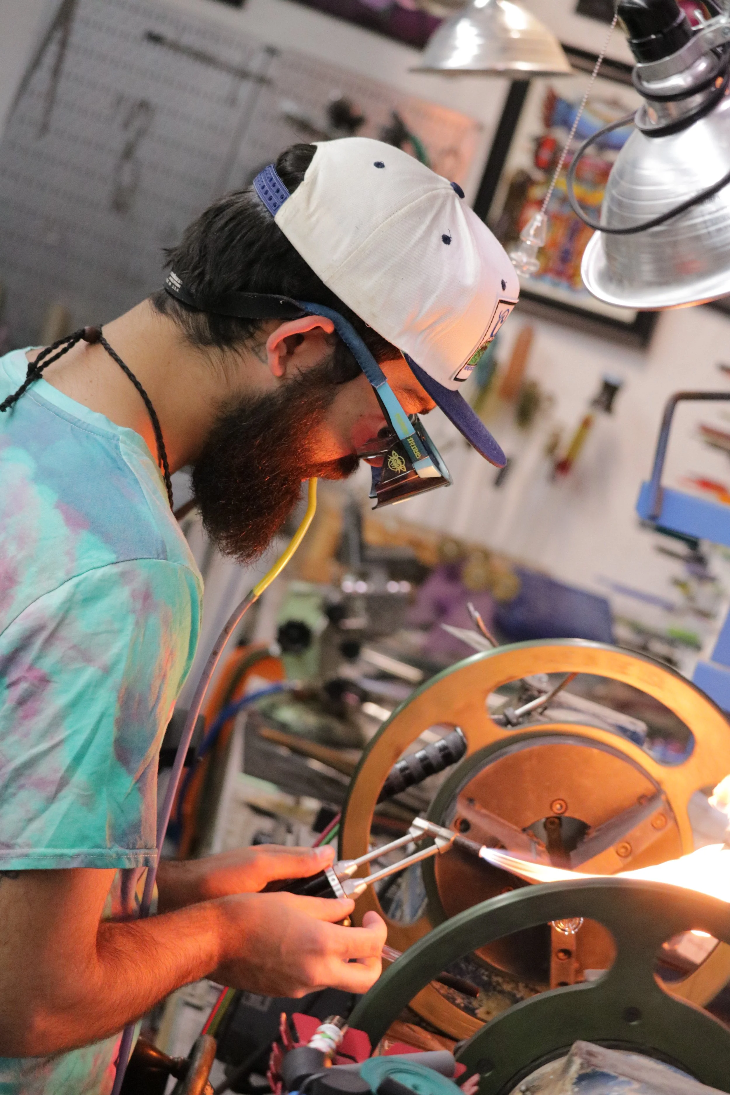 Aspen also partnered with his long time shop mate Jack and built Tucson torch Works which is a glass blowing school. Our main focus is to make glassblowing accessible to the community. We offer a large range of classes starting with entry level class up to two to three day seminars with artists coming from across the country to teach.