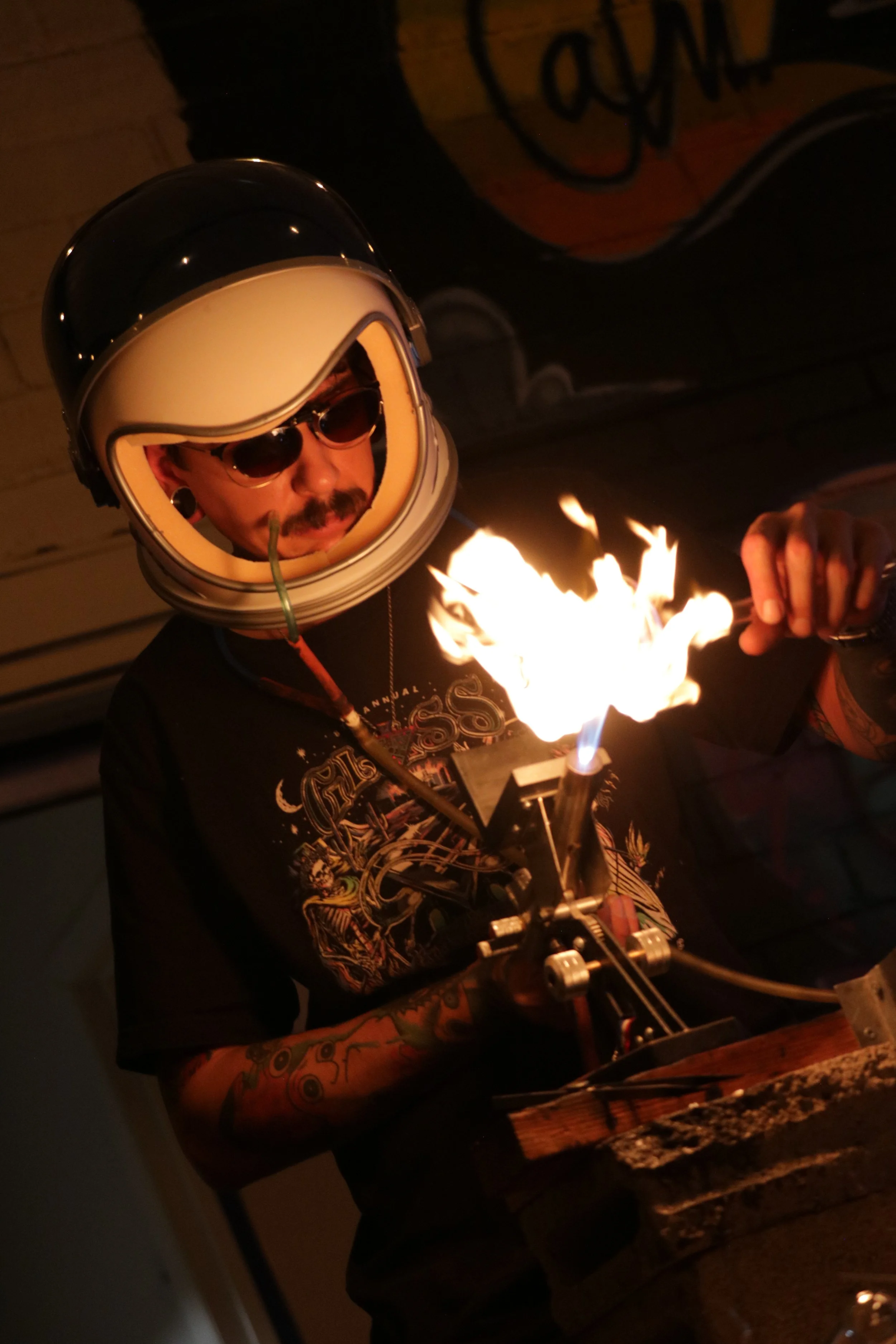 “For me glass changed everything gave me a way to channel my feelings and put my thoughts into something physical. Its taught me to let go of ego, let go of fear, let go of material items. Showed me what truly matters most is the bonds we make as we grow and strive to learn and get better as a person and an artist. I love glass art”-Howlsglass